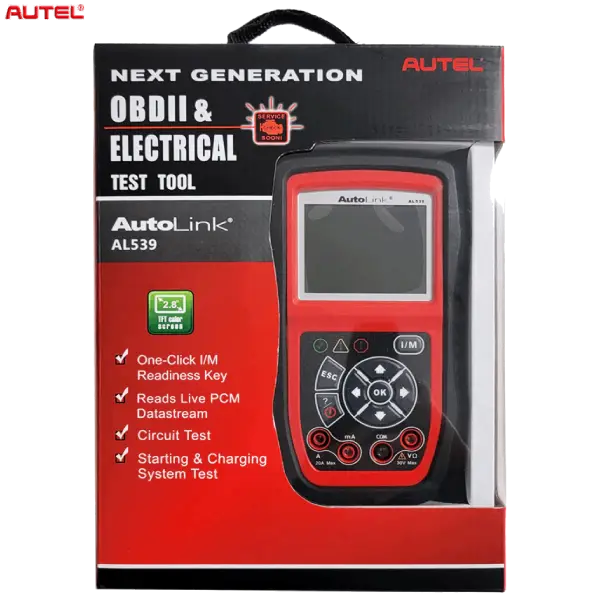 The AutoLink® AL539 OBDII & Electrical Test Tool supports all 10 modes of OBD II test for a complete diagnosis. Featuring the unique patented One-Click I/M Readiness Key, circuit test, starting and charging systems test, TFT color display, and built-in speaker, the versatile, easy-to-use AL539 will streamline automotive service and help ensure rapid, accurate diagnosis and timely repair.